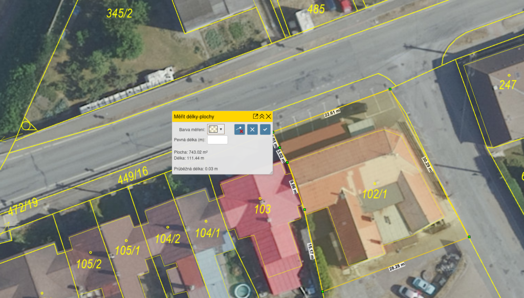- Rozloha celého pozemku: st. p. č. 102/1 v k.ú. Kařez 1324 m2